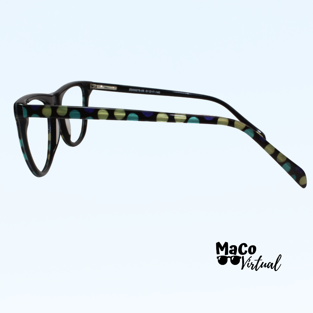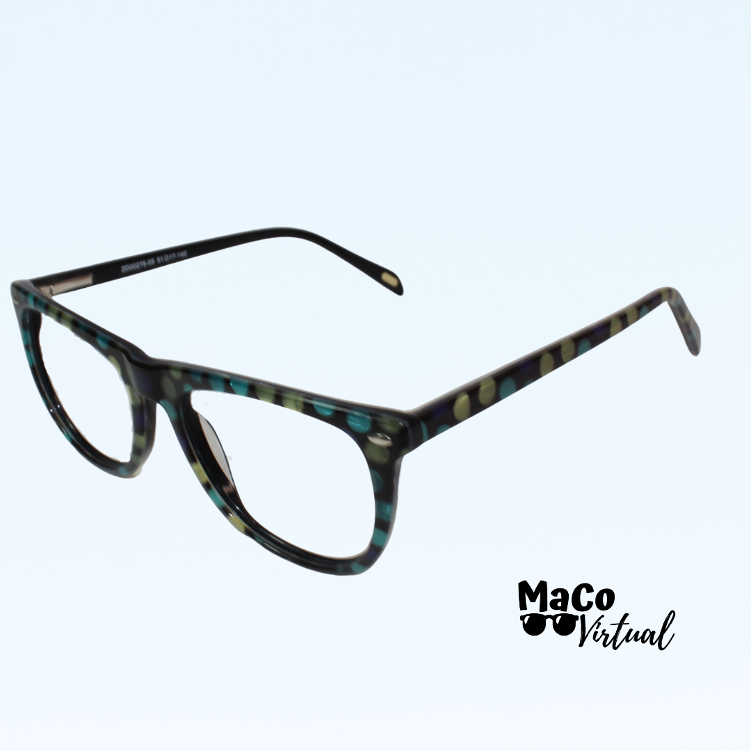 • Material: Liviana de acetato con flex en la unión del aro y brazos de la montura.